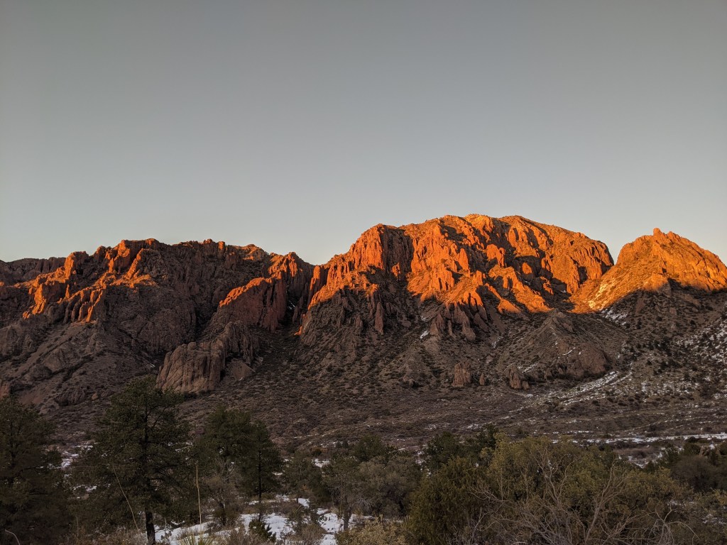 I then had the pleasure of visiting three more National Parks: Carlsbad Caverns, Guadalupe Mountains, and Big Bend. The Caverns are part of the 250 million year old Permian Reef, formed back when Pangaea was a thing, so when I went hiking all the exposed limestone was studded with the bodies of ancient sea-creatures. Yes, I broke federal law and picked up a few rocks. Please don’t tell. I won’t waste too much space trying to describe the experience of walking through the cavern’s hanging gardens of stalactites and fairy forests of stalagmites, because it’s really something you’ve got to see, but the closest comparison would be walking through a dimly lit cathedral populated with marble statuary – the cave had the spooky, holy vibe of an old church. The Guadalupe Mountains are conveniently located right down the road, so on New Year’s Day I conquered the highest point in Texas, climbing 900 metres from the Chihuahuan desert to a forest of ponderosa and pinyon pines. Lastly, I explored Big Bend. I went skinny-dipping in the Rio Grande, hiked through the snow and mud in the Chisos Mountains, and walked beneath the 150-foot walls of the Santa Elena Canyon, where the Rio Grande runs green and swift and you can wade across to Mexico.