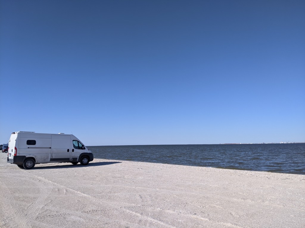 I’m currently in a hotel room, waiting out the winter storm that has closed portions of I-40 along northern Arizona. After driving a few hours through white-out conditions, fretting over my own mortality, I’m enjoying my version of heaven: shitty cable TV, a vending machine dinner, and a six-pack of domestic beer that I picked up at a truck stop. I’m going further west as soon as this blows through. See, I thought about heading Florida-ward, but I missed big landscapes and free BLM camping and the precipitation-free climate and the van-dwelling desert people and the possibility of being abducted by aliens. So I turned around, thinking I’d head back west along the northern route, through Albuquerque and Flagstaff – not realizing that these places experience actual winter, and actual weather, and that my seat-of-my-pants strategy of just driving somewhere without checking the forecast first was going to be a real hindrance.
