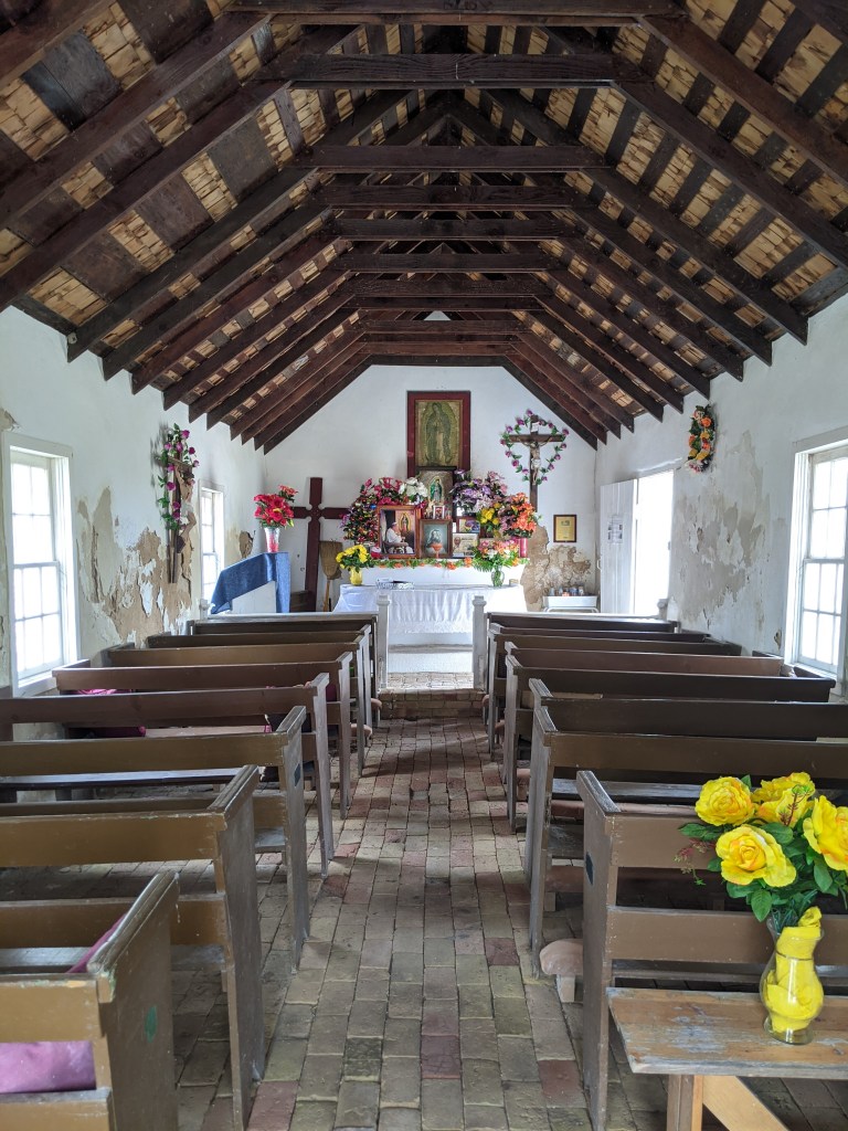 From the wasteland of West Texas, I followed the border with Mexico south along the Rio Grande. The borderlands speak to the weird biculturalism of Texas, where the American and Mexican meet and mingle. Most of the American towns I passed through were nearly abandoned, while just across the river the Mexican sister cities thrived. In these border towns, the only businesses that survive are those related to the cottage industry of Mexican/Catholic celebrations and ceremonies: dress and tux rental shops, banquet halls and ballrooms, florists and photographers. I bet you could have guessed that while many of these towns were in a state of disrepair, the Catholic churches were always in tip-top shape.