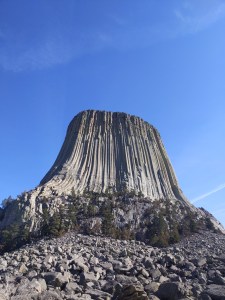 In the northeast corner of Wyoming stands the Devil’s Tower, a sloping stone monolith striated into vertical columns of rock that are apparently a rock climber’s dream. It is a very humbling place, and a sacred place as well. The local indigenous people tell origin stories likening the Tower to a tree stump that has been scored by the claw marks of a large bear. All throughout the surrounding forest brightly coloured prayer bundles hang from branches, left as offerings and blessings. At the base of the woods, the trees open into meadows where prairie dogs congregate in underground “towns,” recognizable by the mounded openings where dogs sit sentry. When approached they throw their little paws in their air and scream a warning, which is then echoed by other sentries until each dog is worked into a fearful frenzy and sits low in its hole, wagging its black-tipped tail and chirping in alarm. It’s a great joy to stroll through a dog town and feel like the monster in a fairy tale, a figure of great power – particularly after feeling so small and insignificant in the presence of the Tower.
